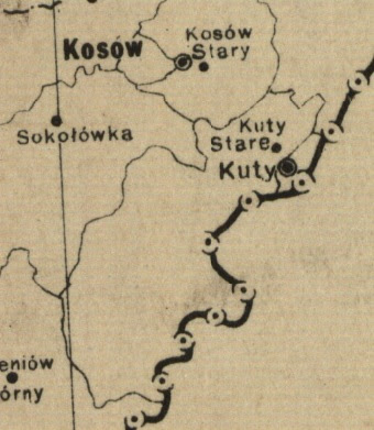 Kuty, Rożen Mały(Малий Рожин ), Rożen Wlk. (Великий Рожин) , Roztoki ( Розтоки) Tudiów ( Тюдів), Słobódka ( Слобідка),Kuty Stare (Старі Кути)